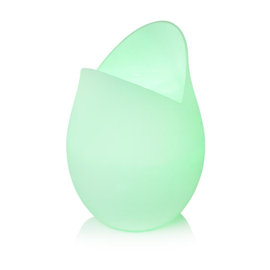 Fraai vorm gegeven aromaverdamper in de vorm van een tulp vervaardigd van mooi wit matglas waarmee u op ultrasonische wijze een goed binnenklimaat creëert in huis of op kantoor. Als in een open kelk ziet u het zacht lilakleurige licht en in het schijnsel heel fraai ook de kronkelende waternevel of watermist. Door het toevoegen van enkele druppels etherische olie aan het waterreservoir verspreidt de aroma diffuser een heerlijke geur. Zo kunt u ongewenste geuren tegengaan of maskeren. Het verdampen gebeurt middels een koude nevel doordat de combinatie van water en olie in miljoenen micro-partikels uiteen valt. Dit mengsel wordt makkelijk geabsorbeerd door het lichaam en blijft lang in de ruimte hangen. Dit heeft een gezondheids-bevorderend effect! Want het gaat een te droge lucht binnenshuis tegen door deze continu te bevochtigen, maar de aroma diffuser draagt tevens bij aan uw rust en ontspanning en het verminderen van stress door de vredige sfeer van de verlichting.